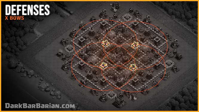 X-Bows are secured in four separate compartments close to the core and are set to target both ground and air. Since we often get attacked by both types of armies, setting them to ground only for a little extra range just isn’t worth it.
