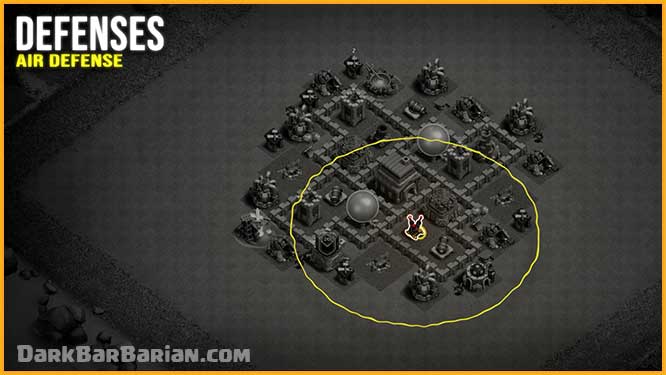 Air Bombs are carefully placed after analyzing multiple attacks on this base. They help weaken Balloons before they reach the core, making it easier for Air Defense to finish them off.