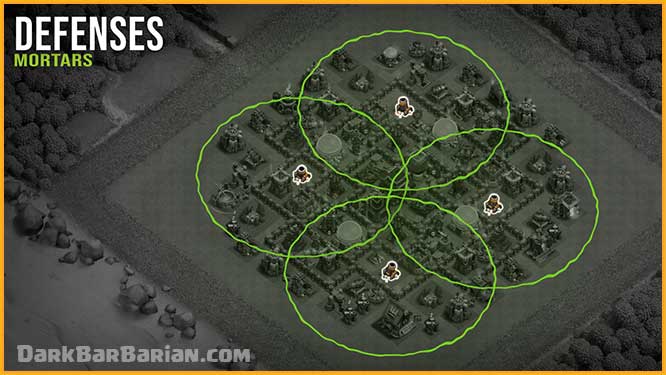 Seeking Air Mines and Air Bombs are positioned to assist the Air Defenses in dealing with air troops such as Balloons, Dragons, Baby Dragons, and Lava Hounds.