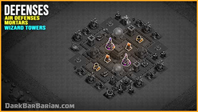 The most important defenses at Town Hall 6 are the Air Defenses, Mortars, and Wizard Towers. These three defensive structures are crucial because they protect the base from both air and ground attacks.