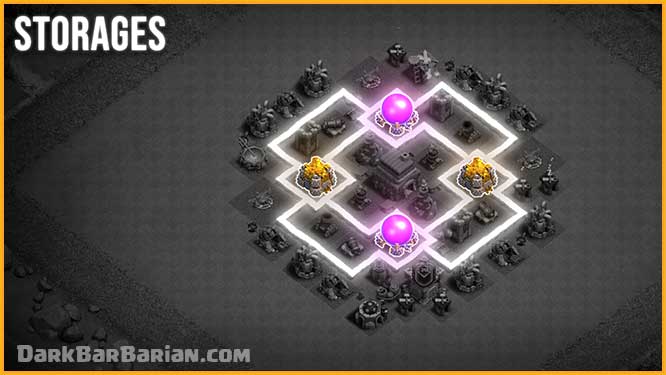 Also, we have placed our storages in outer compartments so that we can use them as a tank for the defenses that are inside. Because those storages have high hitpoints, they can be used as a guard for our defenses. In this case, defenses protect the storages by killing the troops that attack the storages, while storages protect the defenses by providing them with time.