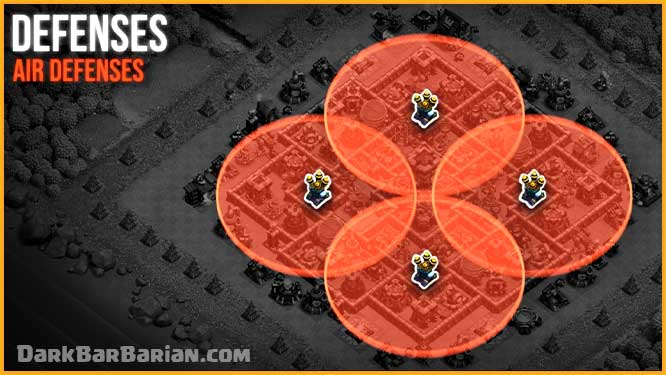 Their positions allow them to cover almost the entire base, making this layout strong against air attacks like Dragons, LavaLoon, and Electro Dragons.