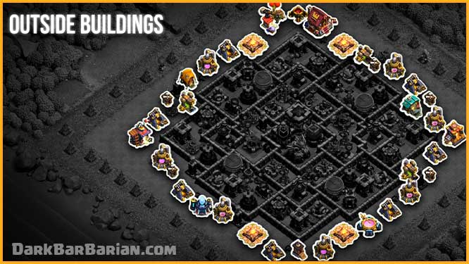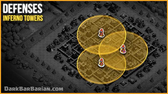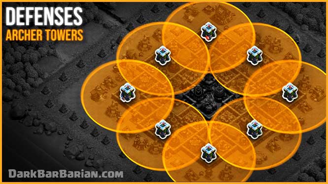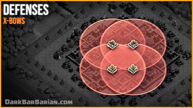 They cover the Town Hall, Clan Castle, Eagle Artillery, airdefenses, and x-bows — all critical structures. This makes core pushes extremely dangerous.