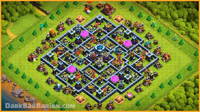Hey guys, Dark Barbarian here, and today I’m bringing you a brand-new Town Hall 13 hybrid base. This base is designed to protect your loot while also helping you maintain your trophies.