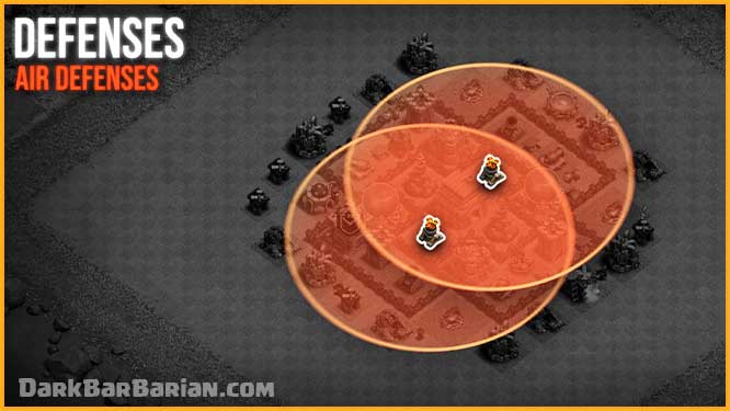 The Air Defense is placed in the center so it can cover most of the base against air troops like Balloons and Healers.The air sweeper works well in combination with air defences to increase protection against air attacks like mass balloon attacks.