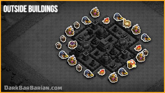 Small bombs are also placed near potential Wall Breaker entry points, which can disrupt the attacker’s funnel and force their troops to walk around the base instead of going directly inside.