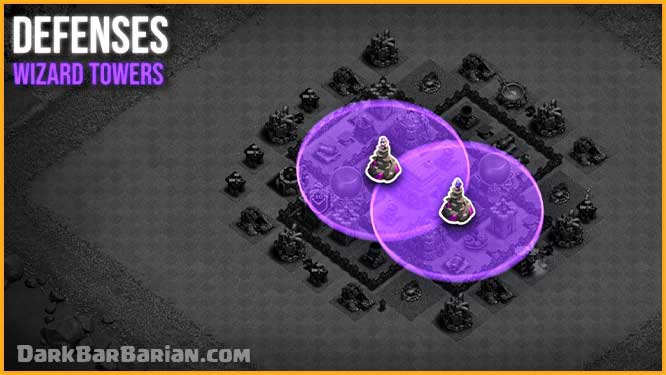 Because Wizard Towers deal splash damage, they are very effective against grouped troops like Barbarians, Archers, Goblins, and also grouped balloons.