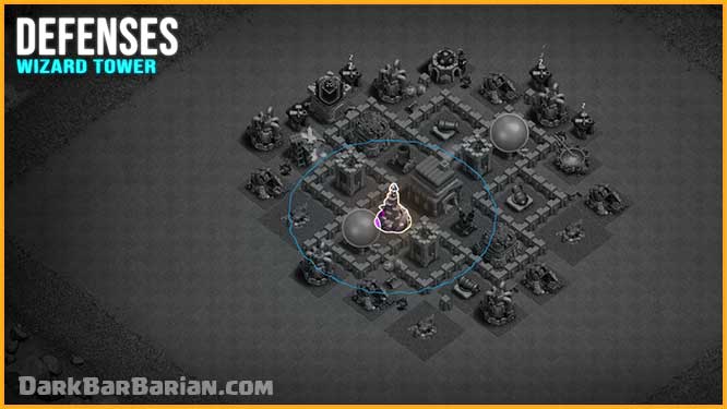 Wizard Tower is the only splash-damage defense at TH5 that targets both air and ground. Its range overlaps with the Mortar and nearby defenses, offering solid support coverage and dealing heavy damage to clumped-up ground troops or Balloons.