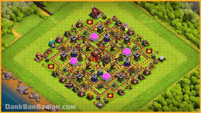 What’s up guys, Dark Barbarian here, and today I’m back with another Town Hall 10 Hybrid Base. This layout is built to give you solid protection for your loot while still helping you hold onto your trophies. It works really well for players who want a balanced base that can defend against a wide variety of attack strategies.
