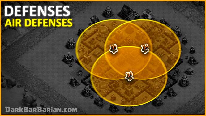 Seeking air mines and air bombs are placed to help the air defences in taking out air troops such as balloons, dragons, baby dragons, and lava hounds.