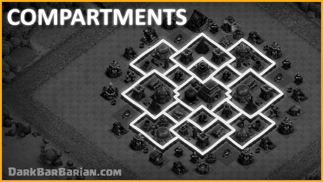 Now coming to storages, they are evenly placed in different compartments, Most inexperienced base designers make the mistake of placing all of the storages in the center and the defenses in the outer compartments. Hence, once the attacker destroys the defenses, they have access to all the loot.