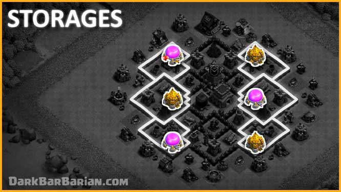 which is not the case in this base because the storages are placed out in several compartments, the attacker must destroy the entire base in order to collect all the loot.